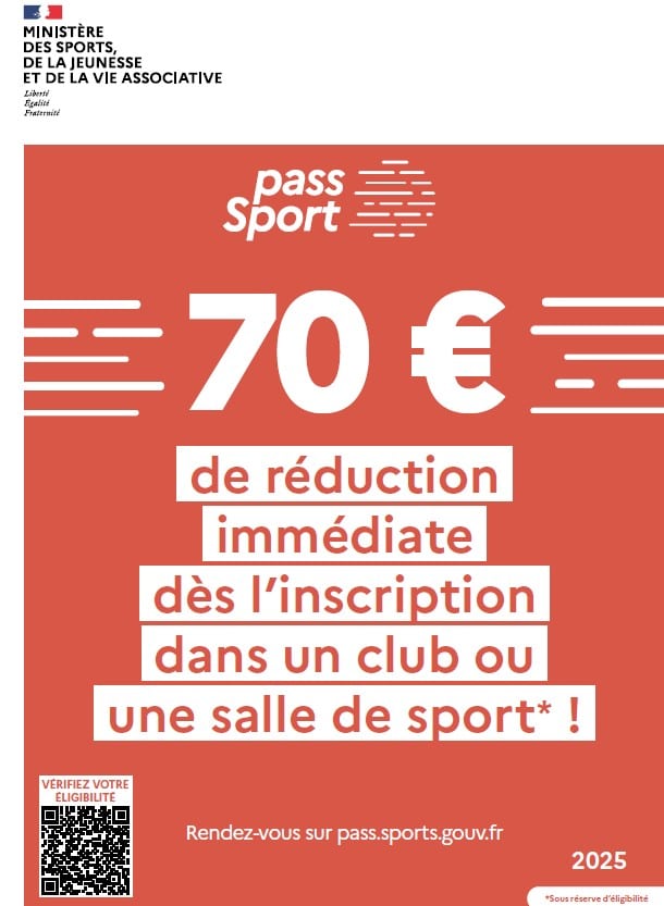 Le pass Sport est une aide financière de 70 € destinée à faciliter l’accès à la pratique sportive pour les jeunes, en particulier ceux rencontrant des freins économiques ou sociaux. Cette aide permet de financer une inscription ou une réinscription dans un club ou une structure sportive partenaire.