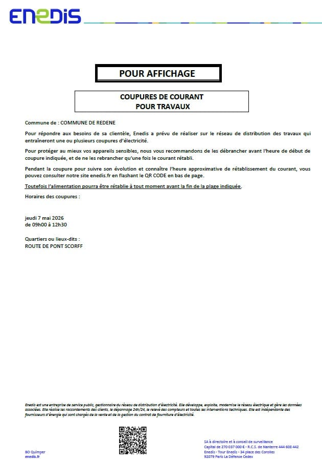 Coupures de courant pour travaux